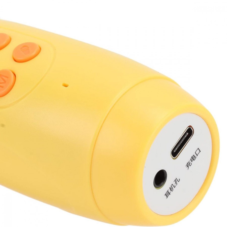Окрім звичайного режиму співу, дитячий мікрофон має спеціальну клавішу М, яка активує режим зміни голосу на мультяшний, додаючи веселощі та розваги під час використання. Легкий доступ до цієї функції робить мікрофон ідеальним для дитячих виступів та ігор. Мікрофон також оснащений світлодіодним освітленням, що змінює колір відповідно до звукового режиму.