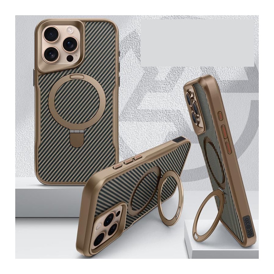 TPU+PC чохол Metal Buttons with MagSafe Carbon Ring для Apple iPhone 15 Pro (6.1") Золотий