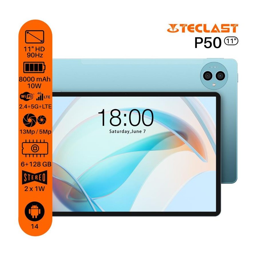 Teclast P50 підтримує 4G LTE, що дає змогу використовувати планшет для інтернет-серфінгу й телефонних дзвінків без залежності від Wi-Fi-мережі. З огляду на це пристрій незамінний для користувачів, які часто перебувають у русі й потребують стабільного доступу до мережі будь-де. Крім того, підтримання Wi-Fi 5 забезпечує швидке підключення до бездротових мереж із можливістю роботи на частотах 2,4 ГГц і 5 ГГц, оптимізуючи швидкість і стабільність з’єднання за різних умов. Bluetooth 5.0 надає змогу підключати бездротові аксесуари, як-то навушники або клавіатуру, забезпечуючи зручність під час роботи або розваг.