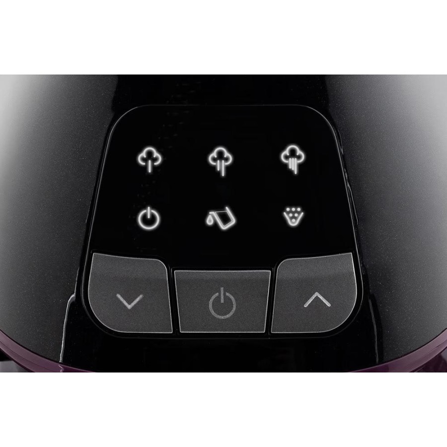 Парогенератор керується поворотним регулятором. Кількість пари можна регулювати в трьох рівнях. На дисплеї відображаються два попередження – одне при порожньому баку, а інше при необхідності видалення накипу.