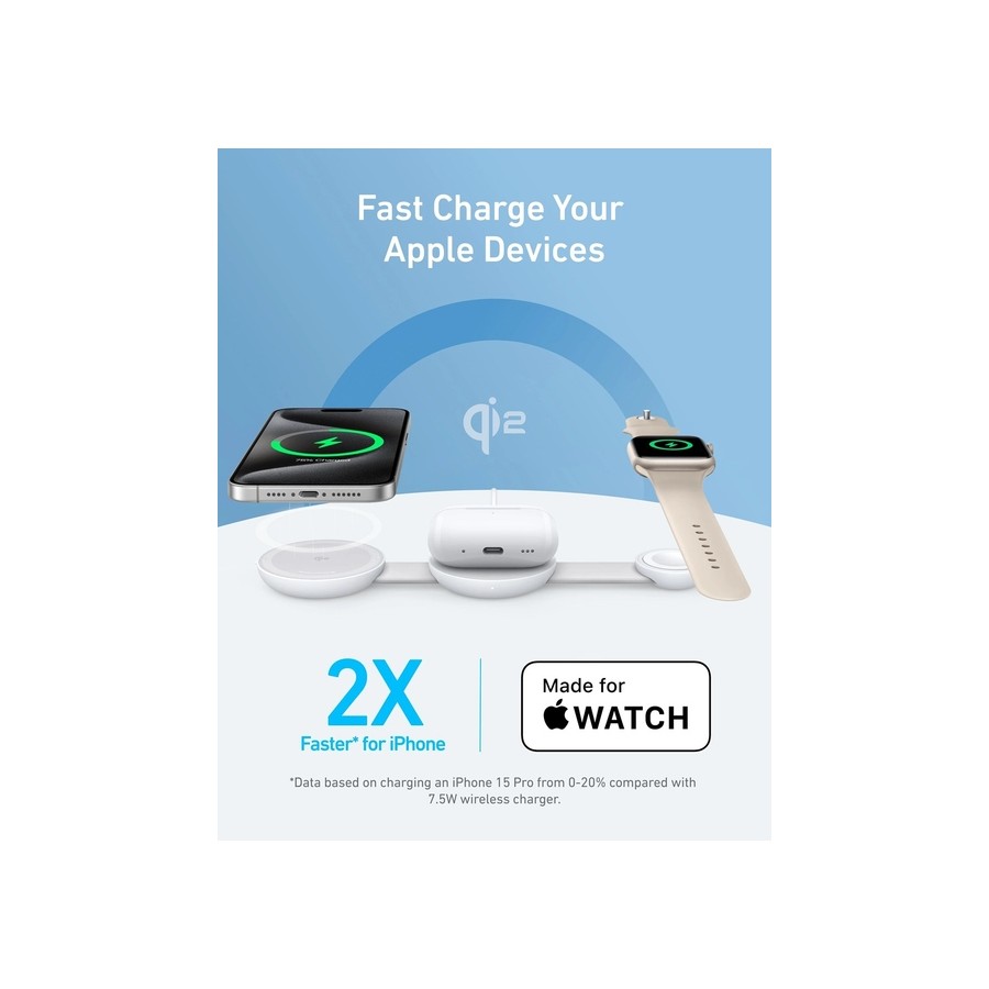 Бездротовий зарядний пристрій ANKER MagGo Wireless Charging Pad 15W 3-in-1 Foldable (Білий)
