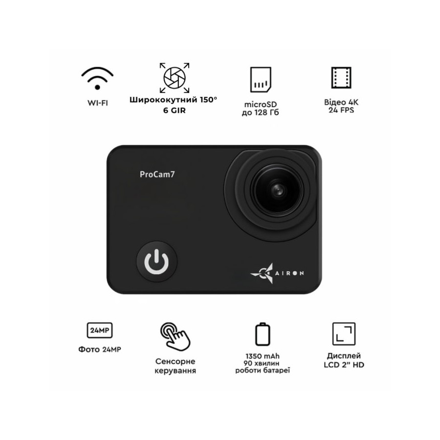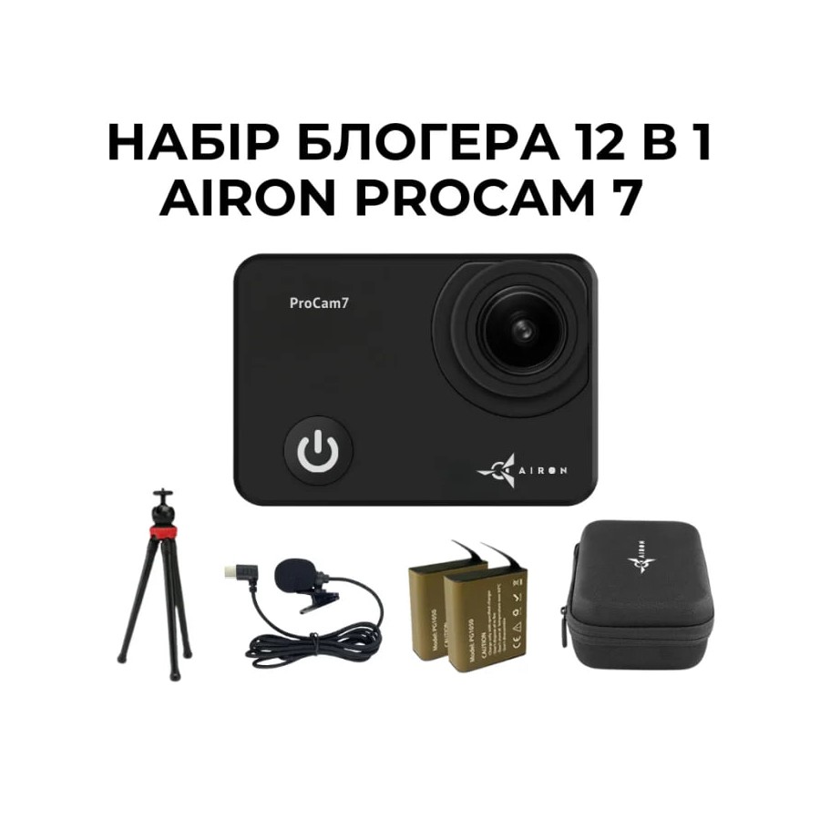 Екшн-камера AIRON Набір для блогера 12 в 1: екшн-камера ProCam 7 Black з аксесуарами