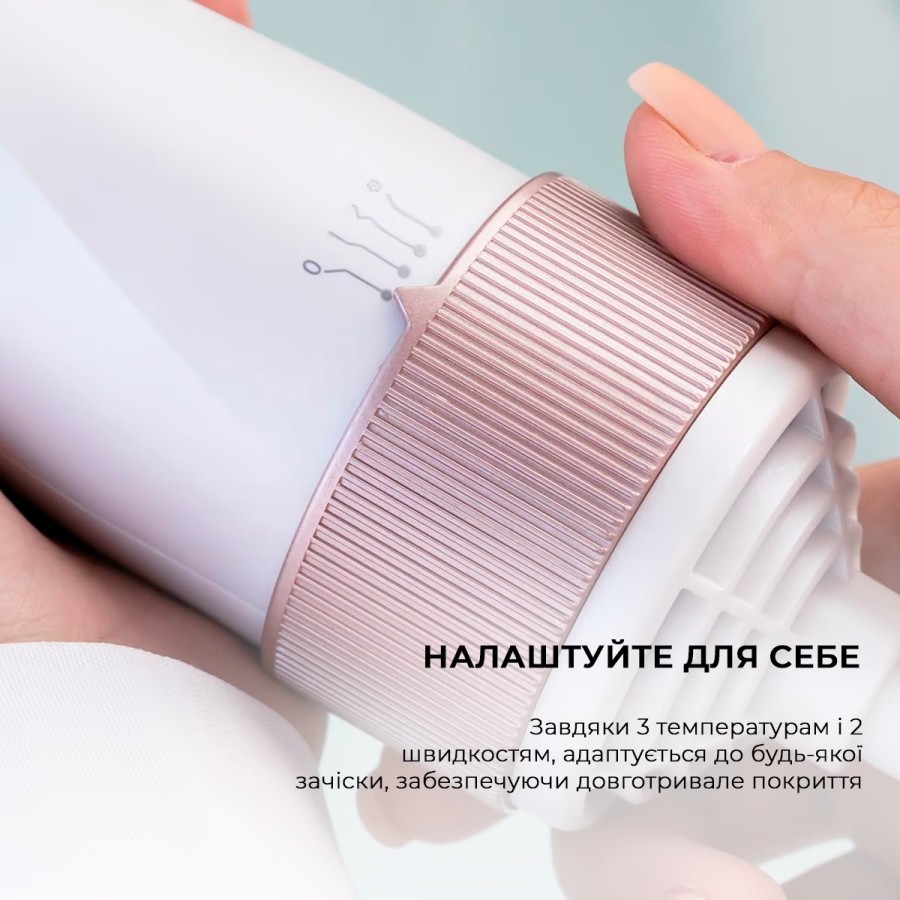 Закріплення зачіски за допомогою холодного повітря Функція холодного потоку повітря у фені допомагає закріпити вашу зачіску і закрити кутикулу волосся. Це покращує стійкість укладання та забезпечує тривалий та надійний результат протягом дня. Тепер ваша зачіска залишатиметься непошкодженою та елегантною навіть у саму вітряну погоду.