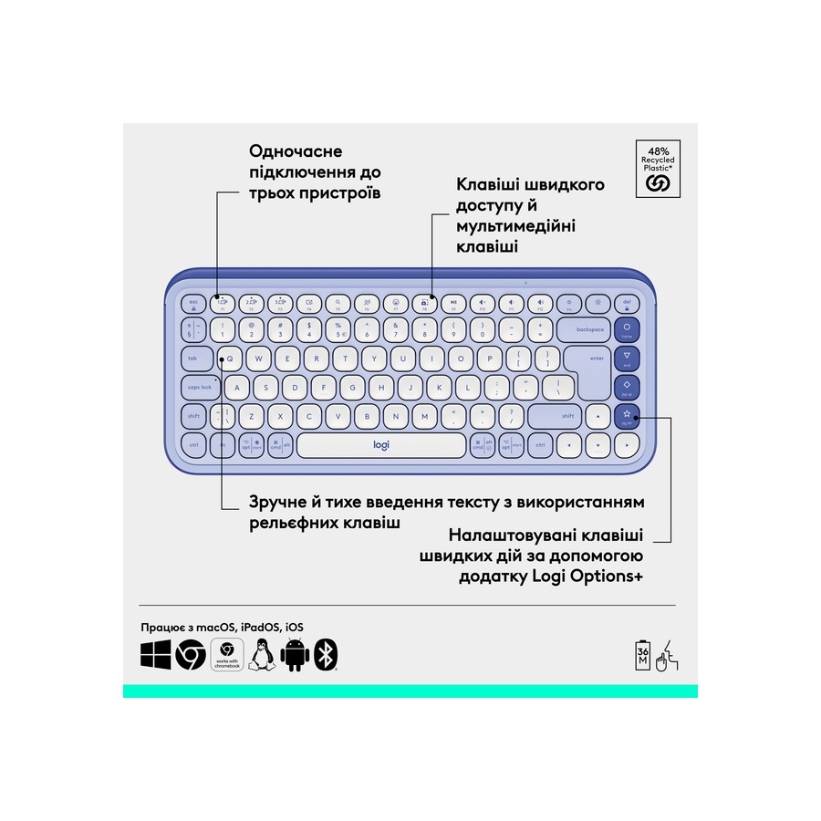 Клавіатура LOGITECH POP ICON KEYS - LILAC - US INT'L (L920-013074)