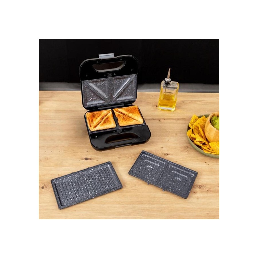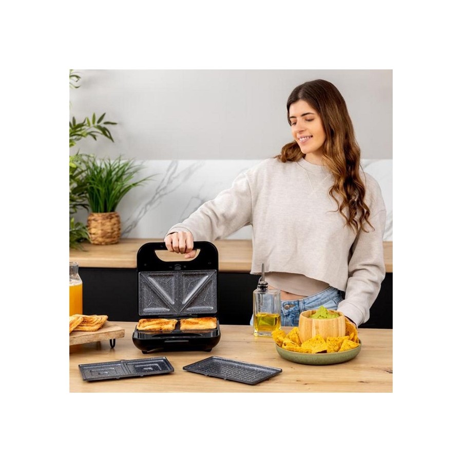 Мультимейкер CECOTEC Rock'nToast Combo З сендвічницею Rock''n Toast 3 в 1 ви зможете насолоджуватися хрусткими бутербродами завдяки 3 знімним і змінним пластинам, які забезпечать ідеальний і рівномірний результат, щоб ви могли насолоджуватися улюбленими поєднаннями.