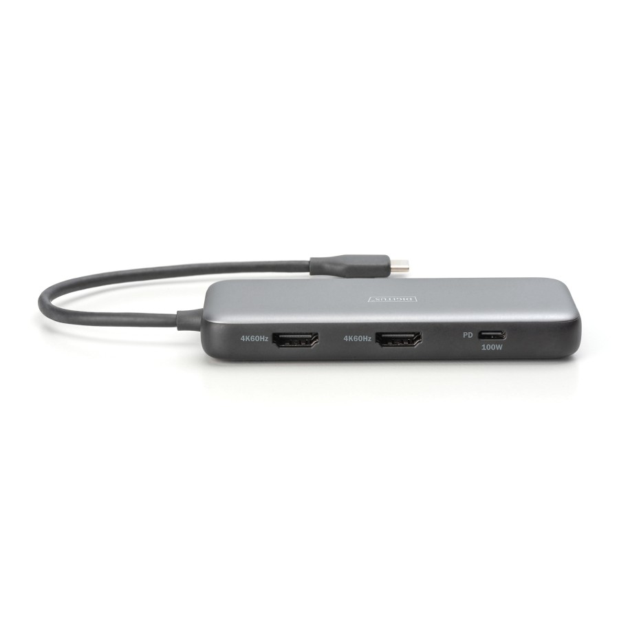 Док-станція DIGITUS DA-70915 — це універсальне 8-портове рішення для розширення можливостей ноутбука, планшета або сумісного мобільного пристрою через один USB-C порт. Дає змогу підключати два зовнішні монітори з роздільною здатністю до 4K/60 Гц у режимі розширення (MST) або дзеркалювання (SST), забезпечуючи більше простору для роботи та розваг.