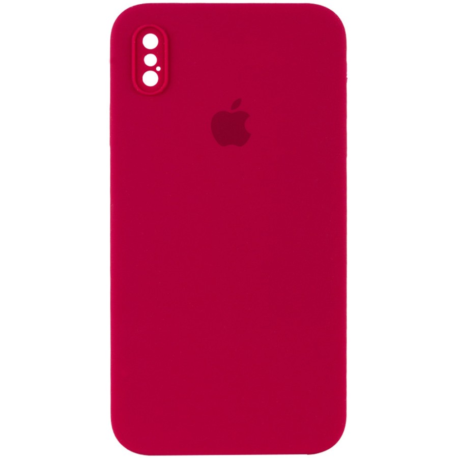 Чохол Silicone Case Square Full Camera Protective (AA) для Apple iPhone XS / X (5.8") Червоний / Rose Red