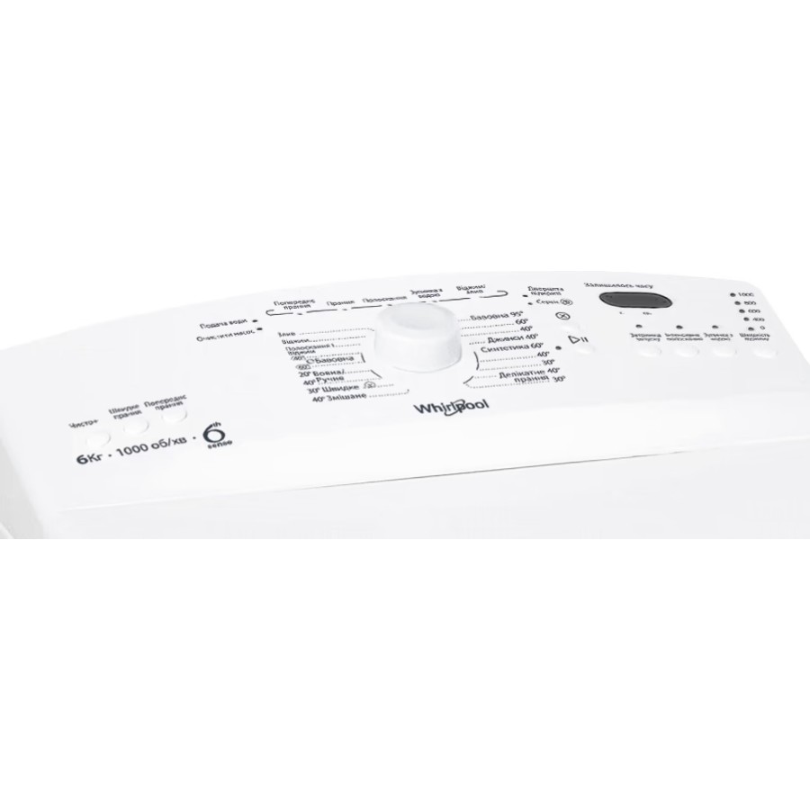 Пральна машина Whirlpool вертикальна, 6кг, 1200, A+++, 60см, дисплей, білий (TDLR60210UA)