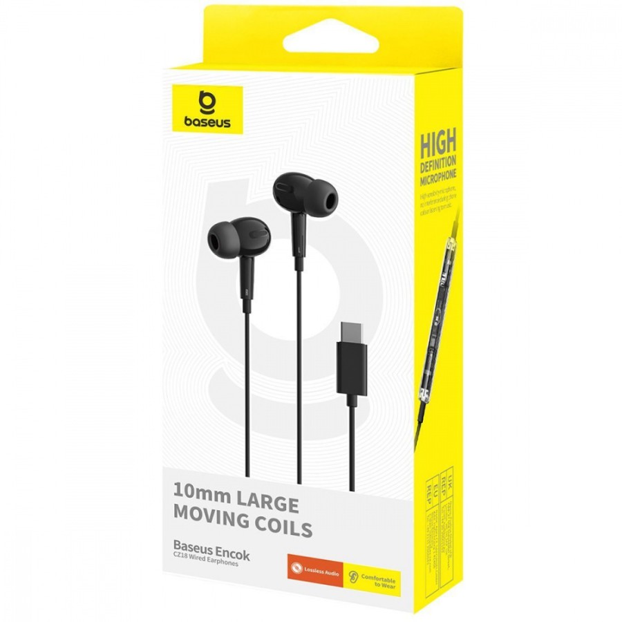 Baseus Encok CZ18 – це вакуумні дротові навушники з м’яким TPE-кабелем довжиною 1.2 м. Він не переплутується, не боїться сонця та витримує навантаження до 200г.