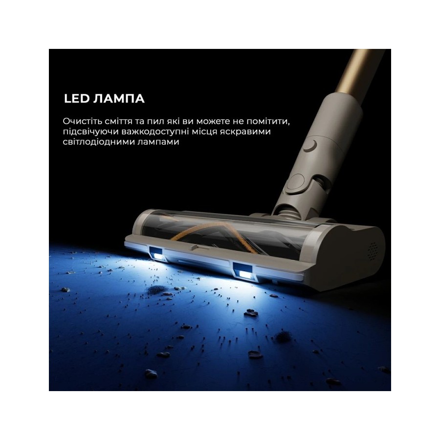 Пил під низькими меблями у темряві стає майже не помітними. Але з Dreame U20 таке маскування не спрацює. Швидкісна турбощітка оснащена трьома синіми світлодіодами, які яскраво освітлюють простір перед пилососом. Тепер ви не пропустите з виду сміття.