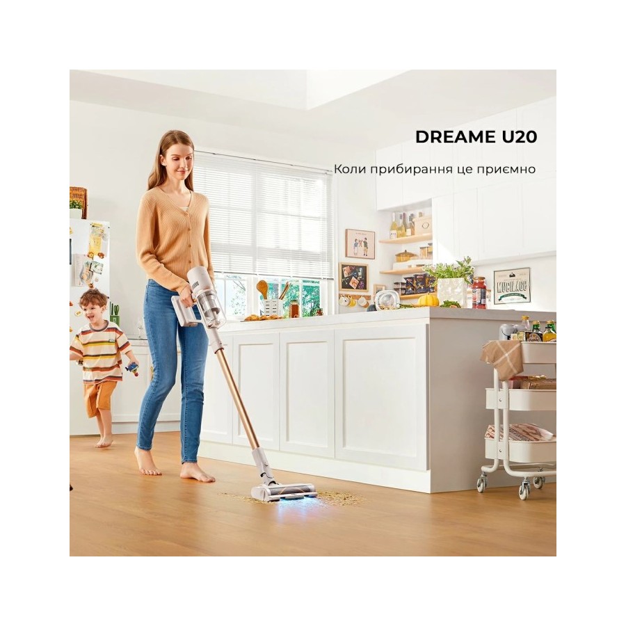 В його стильний дизайн складно не закохатись з першого погляду. Та навіть якщо цього не станеться — Dreame U20 підкорить практичністю. Без подовжувальної трубки пилосос стає супер компактним. Так ви можете використовувати насадку 2-в-1 з твердою щетиною для очищення полиць, кухонних поверхонь, кутів та щілин.
