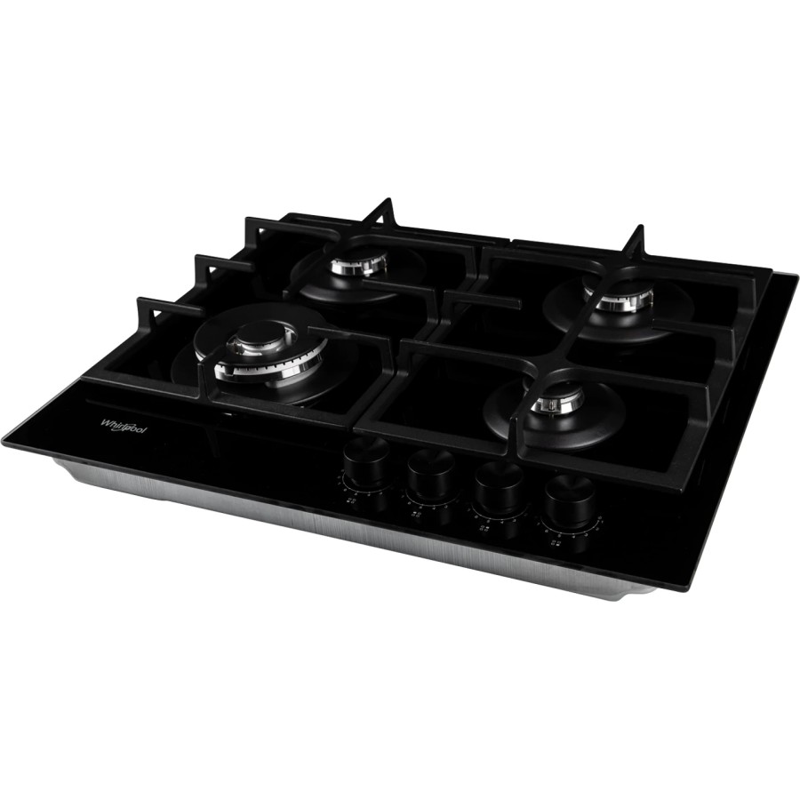 Варильна поверхня Whirlpool газова, 60см, чавун, конфорка з подвійним рядом полум'я, чорний (TGML661NB)