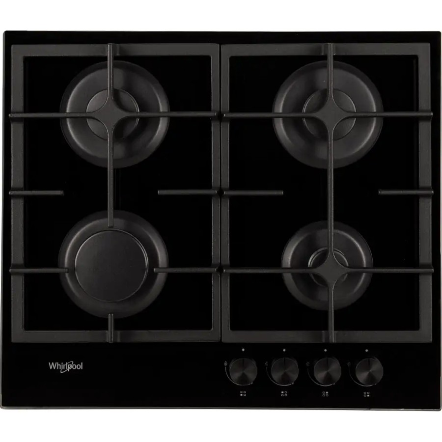 Варильна поверхня Whirlpool газова, 60см, чавун, конфорка з подвійним рядом полум'я, чорний (TGML661NB)