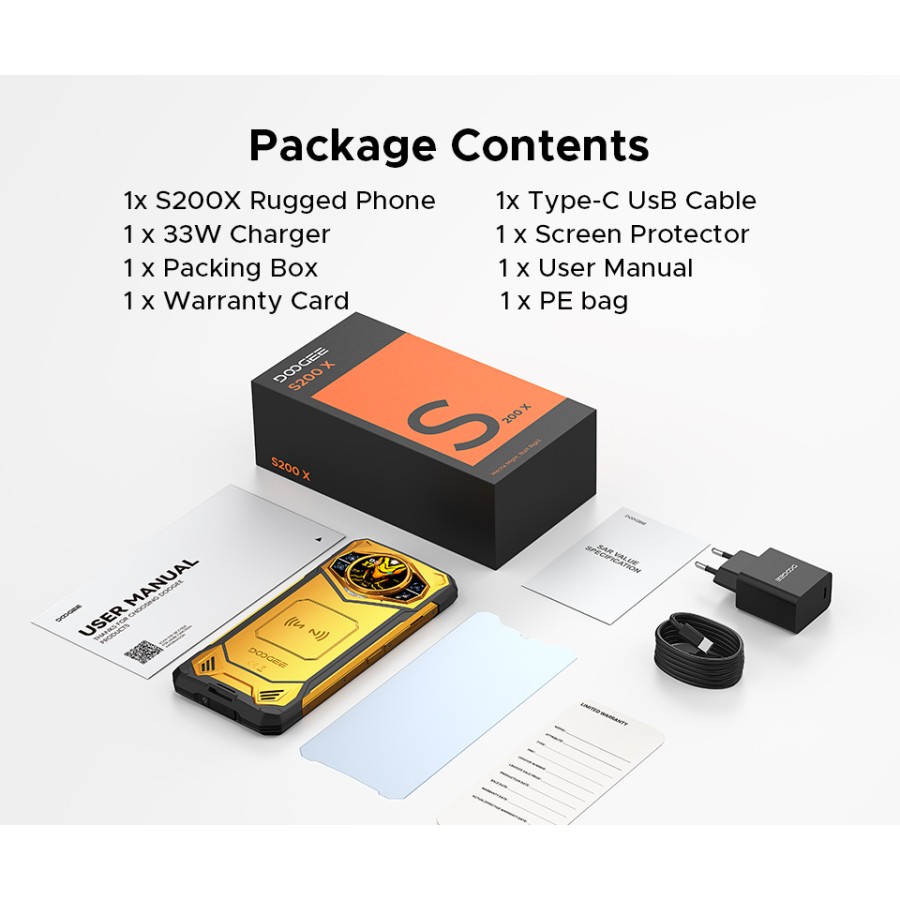 Корпус смартфона відповідає стандартам IP68 / IP69K / MIL-STD-810H, що означає водонепроникність (до 1.5 м глибини на 30 хв), захист від пилу та стійкість до падінь з висоти до 1.8 м. Це робить Doogee S200X надійним партнером у найекстремальніших умовах.
