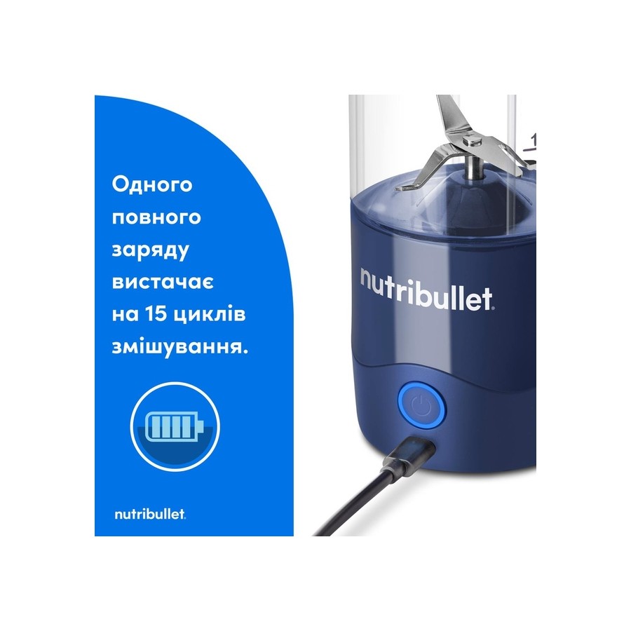 Блендер портативний Nutribullet Portable NBP003NBL Легкий, компактний і готовий до пригод портативний блендер nutribullet дозволить вам насолоджуватися улюбленими смузі, коктейлями та змішаними напоями скрізь де б ви не були. Його акумуляторна батарея забезпечує 15+ циклів змішування на одному повному заряді, а зручна кришка дозволяє легко брати його з собою в дорогу, незалежно від того, куди ви прямуєте - в спортзал, на пляж, в офіс чи куди завгодно.