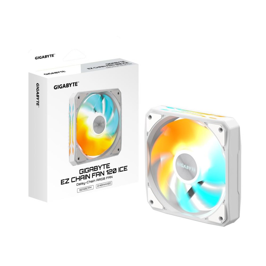 GIGABYTE EZ CHAIN FAN 120 ICE — це поєднання інноваційного дизайну, високої ефективності та естетики, яке стане ідеальним вибором для сучасних збірок, де важливі як продуктивність, так і стиль.