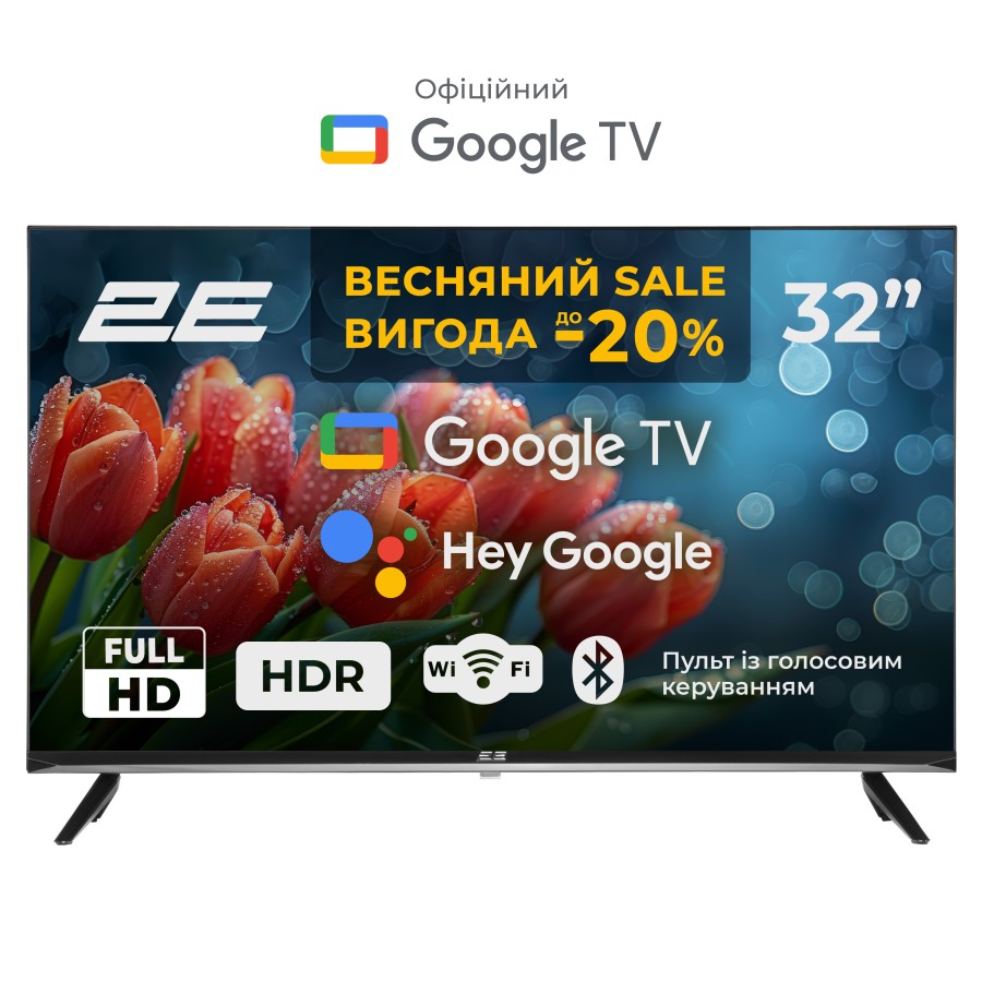 Операційна система Google TV перетворює телевізор 2E на справжній розважальний центр: фільми, серіали, музика, застосунки та інший контент доступний за допомогою лише кількох кліків завдяки інтуїтивному інтерфейсу. Потужний процесор із 1,5 ГБ оперативної та 8 ГБ постійної пам’яті забезпечує швидку та плавну роботу програм, надаючи змогу насолоджуватися світом цифрових розваг без жодних обмежень. Вбудований Wi-Fi і Bluetooth спрощують підключення до мережі та периферійних пристроїв.