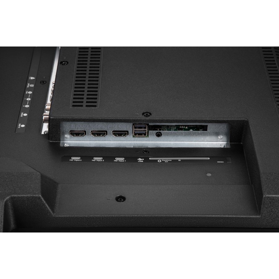На задній панелі пристрою є необхідні слоти для забезпечення повноцінної роботи: USB, HDMI, розніми для навушників, антени тощо. У такий спосіб забезпечено можливість транслювати відео, фото та аудіо з телефона, планшета чи ноутбука.