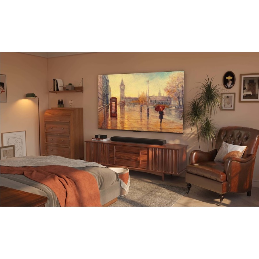 Аудіосистема телевізора, оснащена технологією Dolby Audio, створює багатий і об’ємний звук, який підсилює ефект занурення під час перегляду фільмів або шоу. Завдяки мінімалістичному дизайну з тонкими рамками TCL 65T7B гармонійно вписується в будь-який інтер'єр, додаючи простору сучасності та елегантності. Це ідеальне поєднання інноваційних технологій і стильного зовнішнього вигляду для вашого дому.