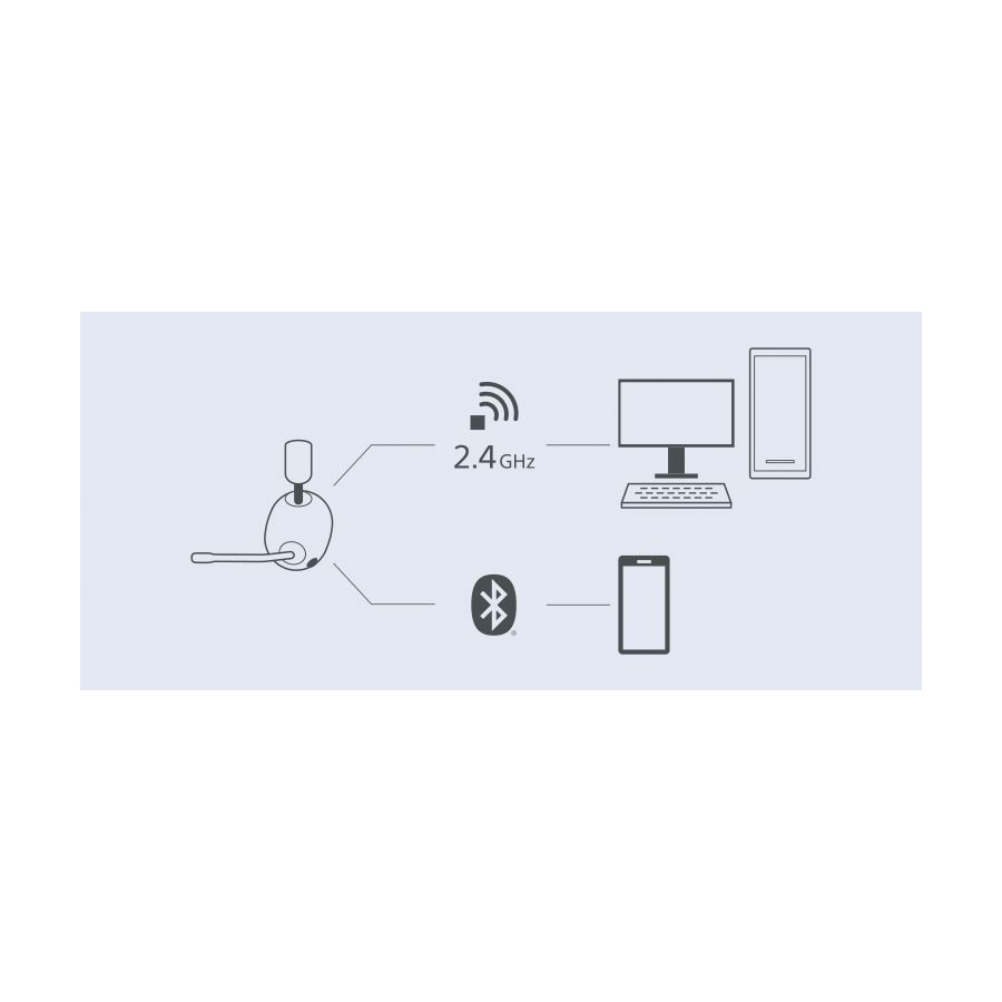 Підключайтеся до смартфона через Bluetooth®, не розриваючи бездротове з’єднання 2,4 ГГц. Ви можете відповідати на дзвінки й говорити в голосовому чаті через Bluetooth®, одночасно граючи в ігри через бездротове з’єднання USB.