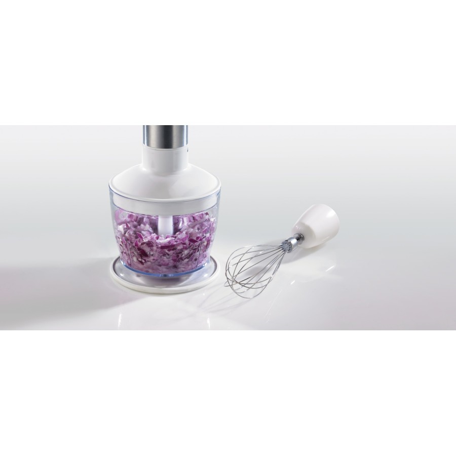 За допомогою подрібнювача можна ефективно подрібнити фрукти, овочі, зелень і горіхи, а також приготувати смачний соус або підливу. Щоб було легше дотримуватися рецептів, на чаші є мірні поділки. Об’єм чаші для подрібнення становить 0,5 л.