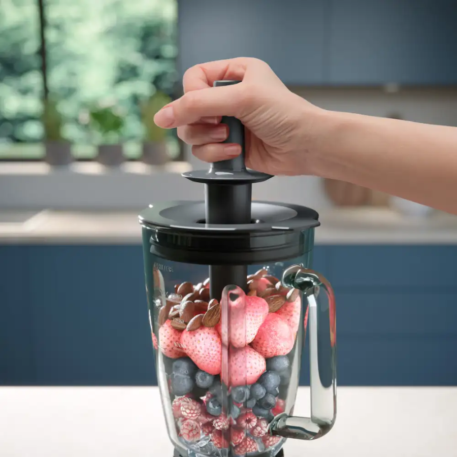 Приготуйте оксамитові смузі та смузі-боули з заморожених фруктів, використовуючи мінімальну кількість рідини або навіть без неї. Для досягнення ідеальної консистенції, використовуйте трамбувальник для занурення інгредієнтів та забезпечення їх рівномірної циркуляції.