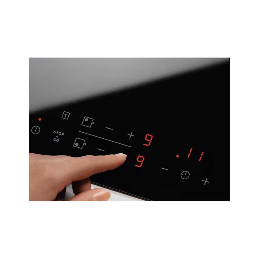 Електрична варильна поверхня Radiant 60 см. Ці сенсорні кнопки із звуковим сигналом є максимально компактними і не затримують час приготування страв, а також надають більше місця для творчості під час готування. Зручний доступ до панелі керування. Елементи керування цієї варильної поверхні зручно розташовані в зоні прямого доступу. Просто простягніть руку і виконайте необхідні налаштування. Одним дотиком призупиняйте та продовжуйте процес готування. Іноді в процесі готування може знадобитися ненадовго відволіктись. Завдяки функції «Stop+Go» можна одним дотиком призупиняти процес готування та продовжувати його з тими самими налаштуваннями.