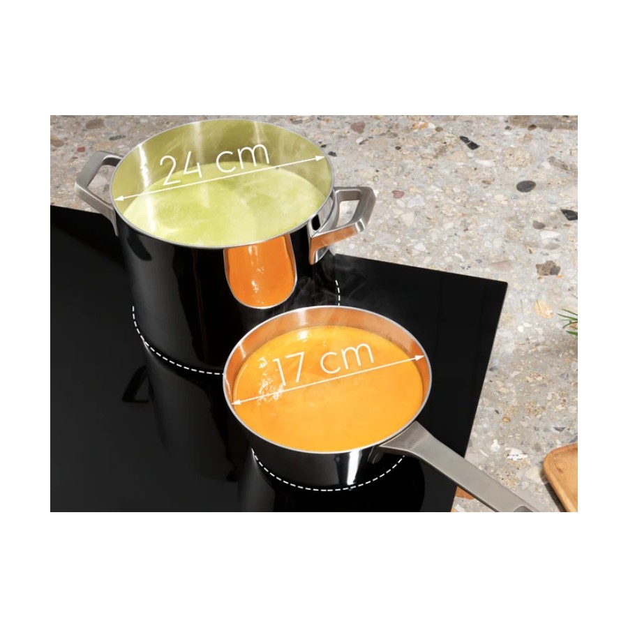 Якщо ваша страва розіллється чи вам треба буде зняти каструлю, варильна поверхня пам’ятатиме налаштування протягом 120 секунд. Вам не доведеться розпочинати готування заново чи знову налаштовувати температуру згідно з рецептом.