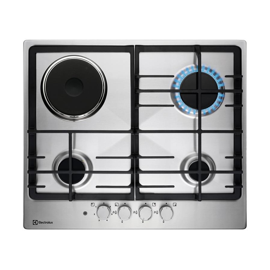 Варильна поверхня Electrolux комбінована (3 газ + 1 електро), 60см, чавун, нерж (KGM64311X)