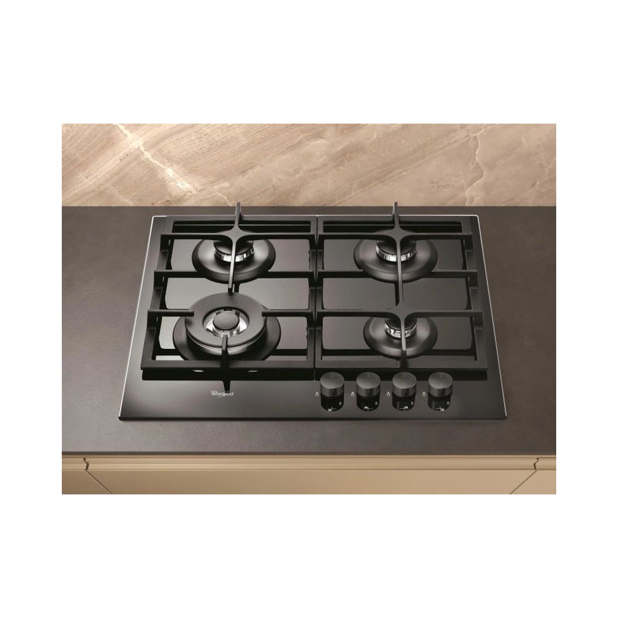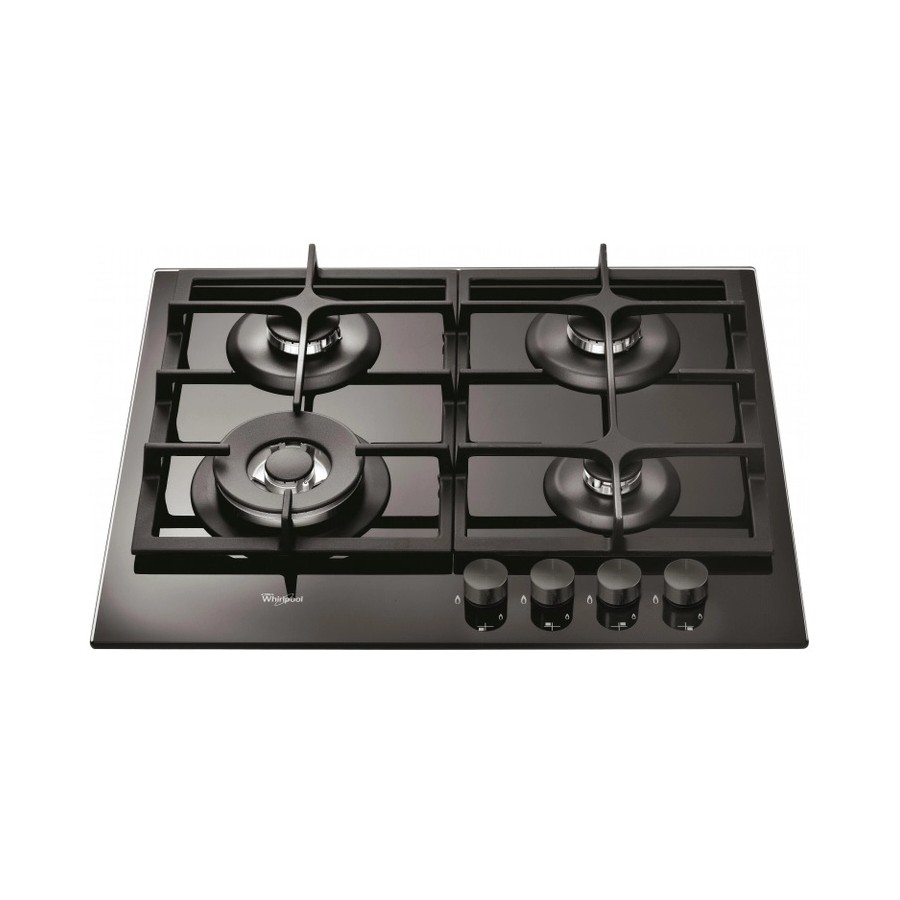 Варильна поверхня Whirlpool газова на склі, 60см, чавун, конфорка з подвійним рядом полум'я, чорний (GOA6425/NB1)