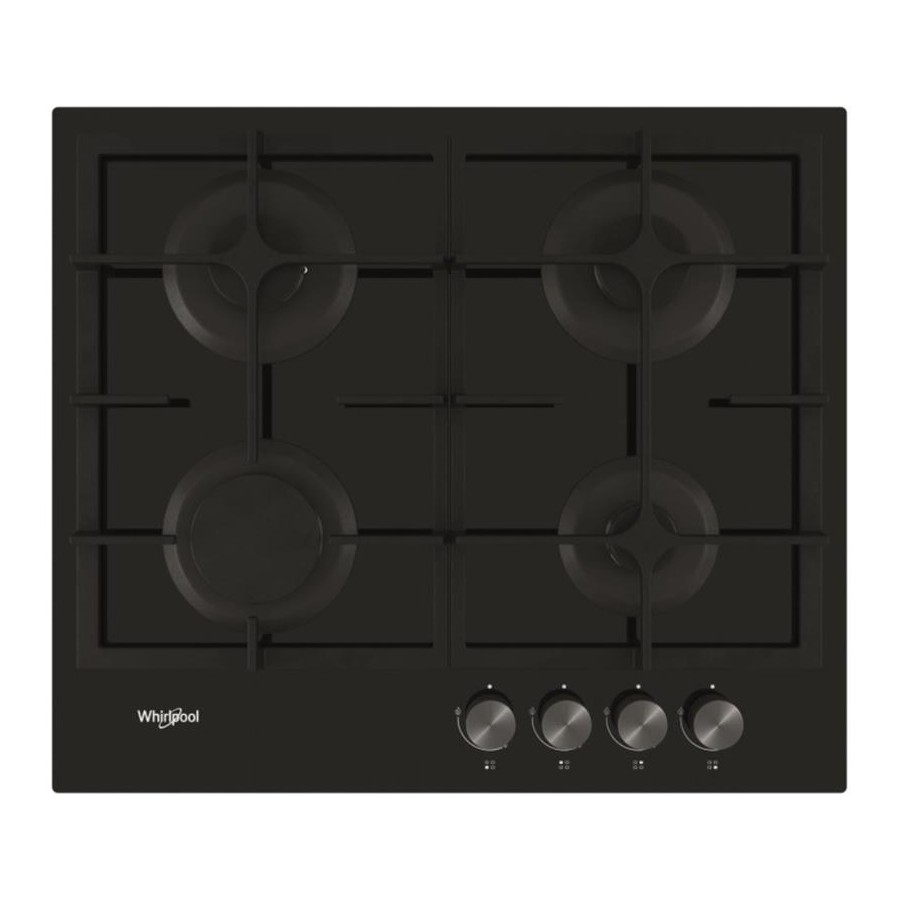 Варильна поверхня Whirlpool газова на склі, 60см, чавун, турбо-конфорка, чорний (GOS6415/NB1)