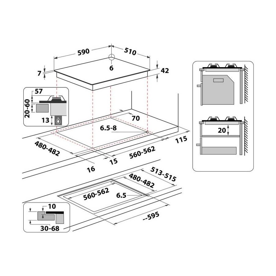 Варильна поверхня Whirlpool газова на склі, 60см, чавун, чорний (GOB616/NB)