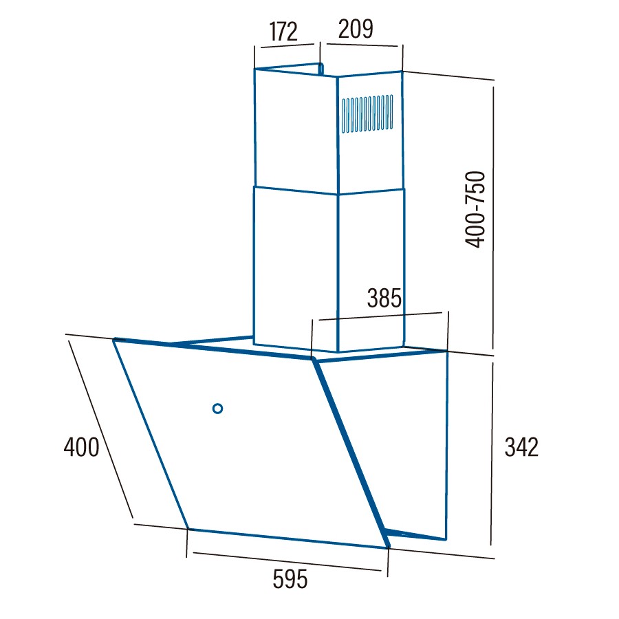 Витяжка Cata похила, 60см, 832м.куб/год, Lena 600 xgbk, чорний