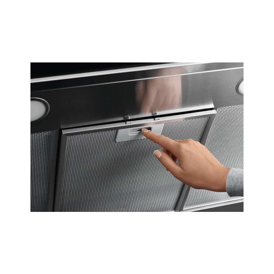 Наша стильна скляна панель управління повністю інтегрована. Електронні елементи управління дозволяють плавно та точно керувати налаштуваннями та режимами роботи витяжки.