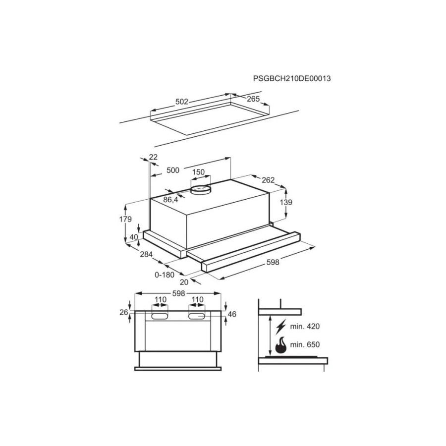 Завдяки потужності всмоктування 410 м³/год, витяжка ефективно усуває пари, запахи та часточки жиру, забезпечуючи чисте повітря на кухні. Телескопічний механізм дозволяє легко регулювати зону поглинання, а два швидкісні режими дають змогу налаштовувати інтенсивність роботи залежно від потреб.