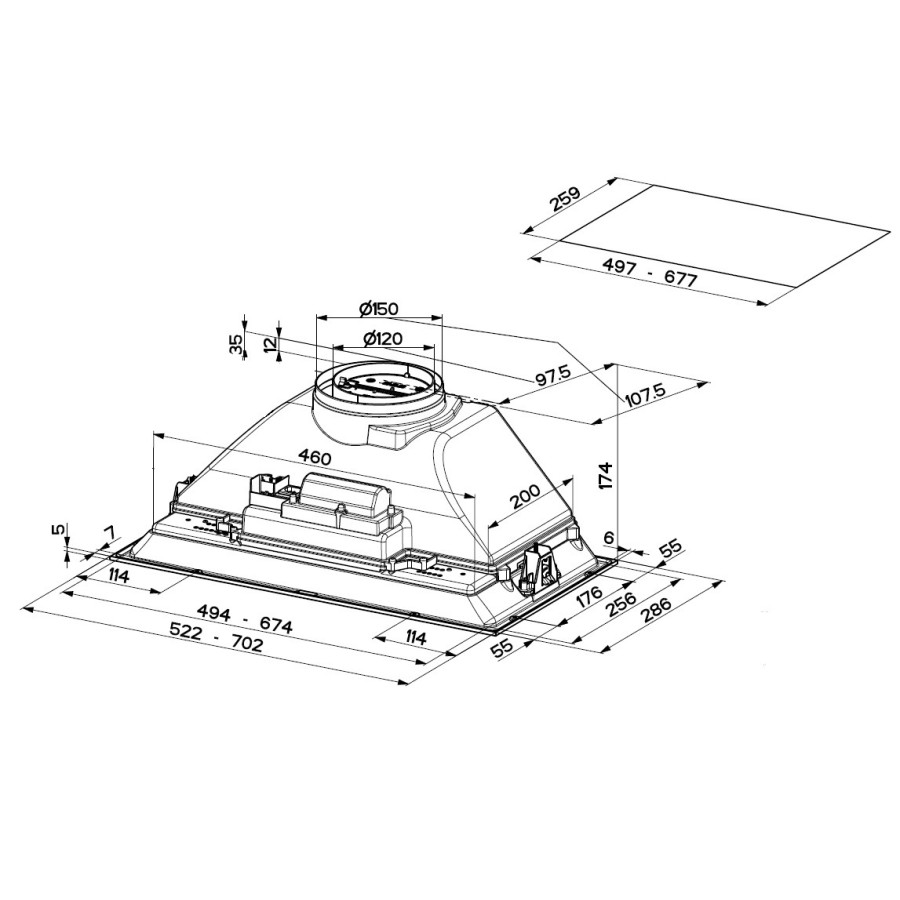 Продуктивність в режимі вільного відведення повітря - це умовне розрахункове значення продуктивності мотору витяжки на максимальній або інтенсивній швидкості поза корпусом витяжки. Така продуктивність відображає теоретичний потенціал приладу, проте відсутній стандарт, який регламентує методику вимірювання такої продуктивності, тому вона є розрахунковою, а не виміряною лабораторним методом.