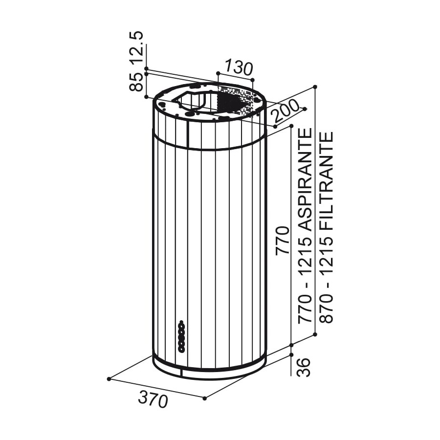 Повітря всмоктується через конічний профіль по периметру зони всмоктування. Це значно збільшує швидкість потоку і здатність втягувати навколишні пари. Панель, що перекриває зону всмоктування, запобігає проникненню шуму від вентиляційної установки назад у кухню, знижуючи рівень створюваного шуму на 25 %.