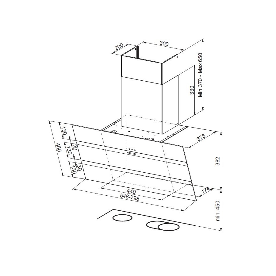Витяжка Faber похила, 80см, 1219м.куб/год, Steelmax Ev8 Led Bk A80, чорний/нерж