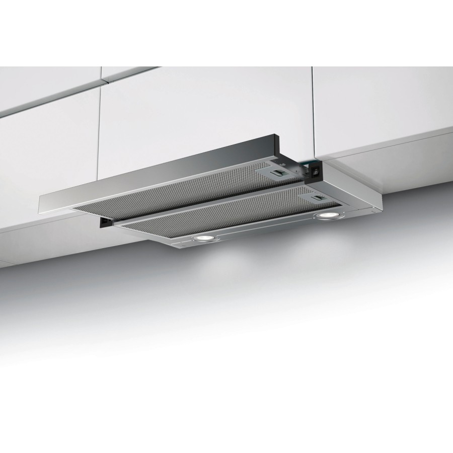 Витяжка Faber TLSC X A60 2LS шириною 60 см телескопічного типу чудово підходить для компактних кухонь. Має два рівні швидкості з максимальною продуктивністю до 580 м³/год. Електромеханічне керування забезпечує простоту у використанні, а LED-підсвітка 5500K створює комфортне освітлення. Жировий фільтр легко мити в посудомийній машині, що спрощує догляд.