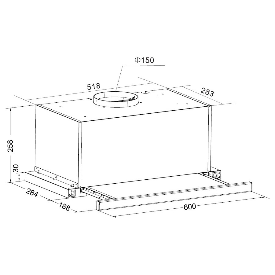 Габарити витяжки (Ш×В×Г): 60×25,8×30 см, діаметр повітропроводу — 150 мм. Це ідеальний вибір для тих, хто шукає надійний та стильний пристрій для своєї кухні.