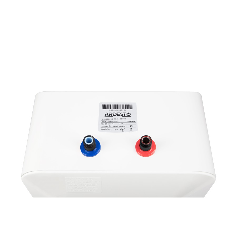 Бойлер Ardesto EWH-10UMWMI виконано у компактному форм-факторі з вертикальним монтажем під мойкою. Механічний блок керування з індикатором роботи розташовано на лицьовій панелі. Під ним передбачено під’єднання до електромережі, а для дроту живлення є отвір та захисна гофра на тильній панелі.