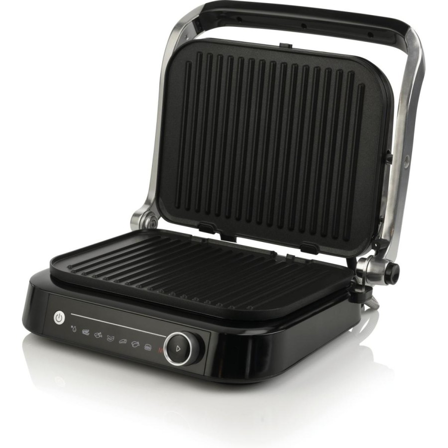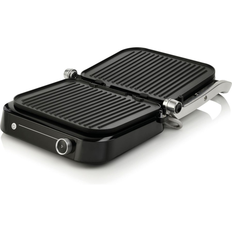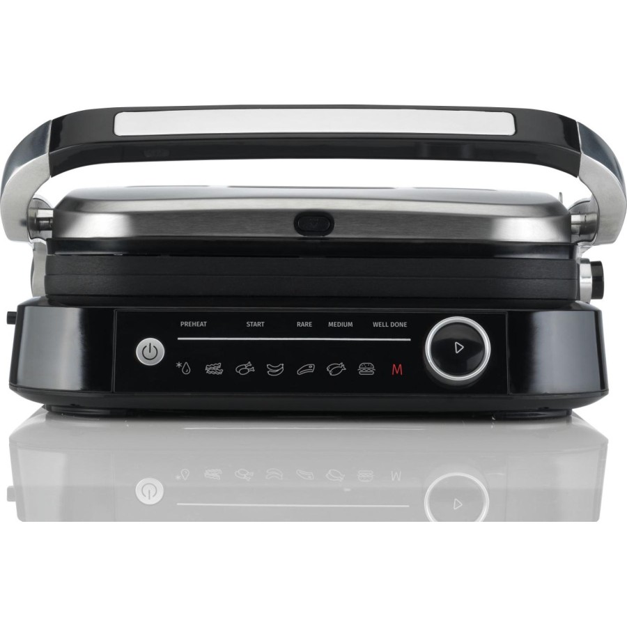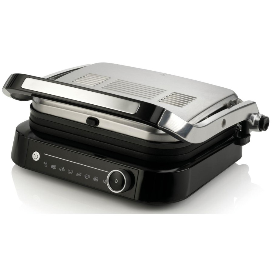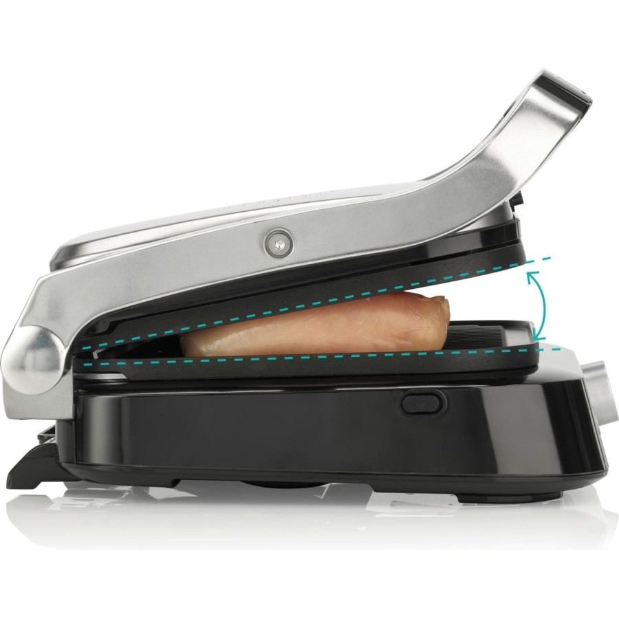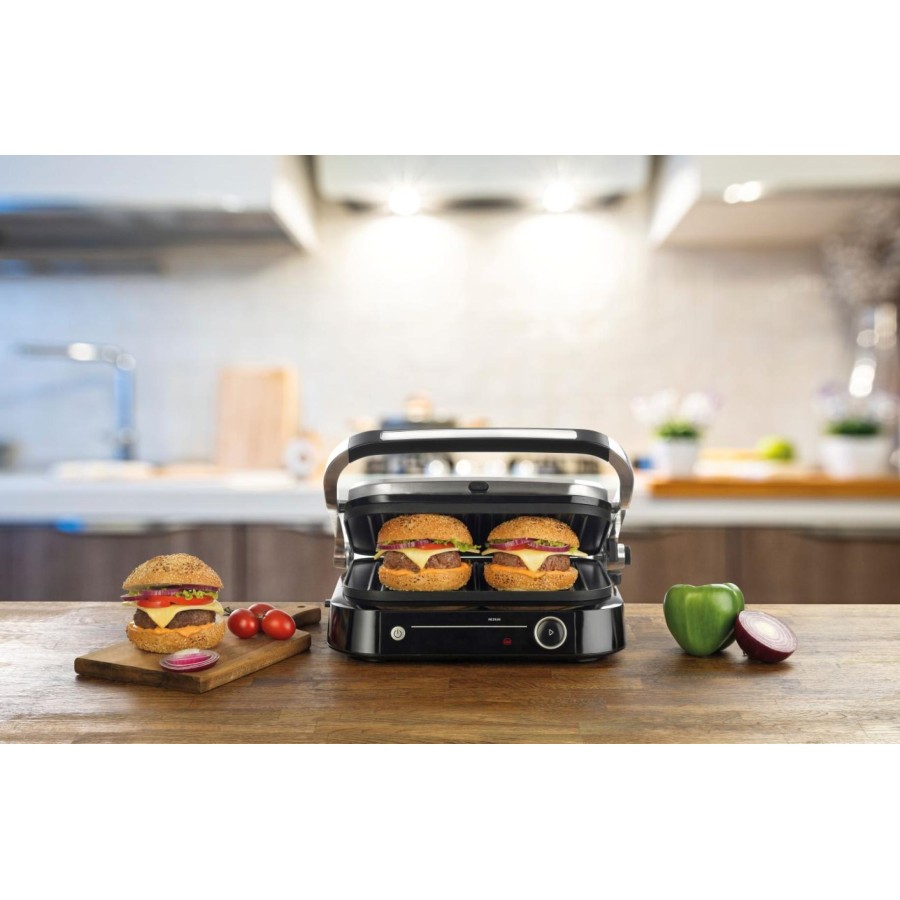 Смаження, запікання та приготування на грилі. Контактний гриль можна відрегулювати відповідно до товщини їжі, що на ньому готується. Крім того, верхню пластину гриля можна повністю відкинути назад, створивши другу поверхню для смаження на зразок відкритого гриля. Готуйте смачні та корисні страви на грилі. Мінімальний час приготування, інтенсивний і рівномірний розподіл тепла, прямий контакт з верхньою та нижньою гриль-пластинами зберігають поживну цінність та соковитість інгредієнтів, що готуються.