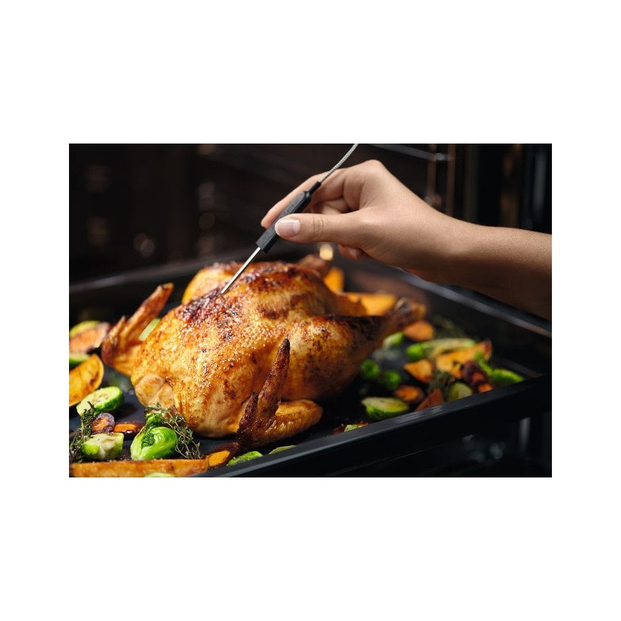 Завдяки нашому термощупу ви можете досягти чудових результатів щоразу. Він дозволяє відслідковувати процес готування, вимірюючи внутрішню температуру продукту. Він навіть повідомить вас про те, коли ваша страва приготовлена до потрібної температури, і припинити готування.