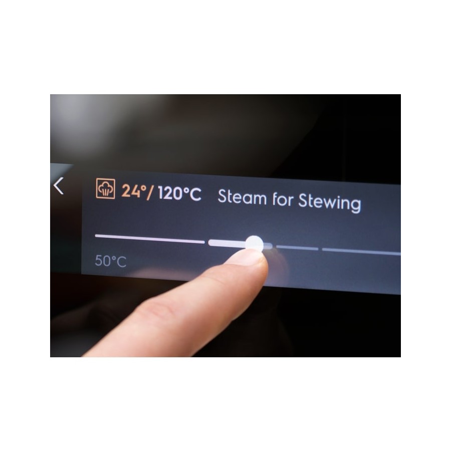 Наша функція Steamify® робить приготування смачних страв ще легшим. Введіть температуру приготування, яку ви зазвичай використовуєте, і духова шафа автоматично встановить налаштування, завдяки чому ваша страва буде приготовлена на пару просто досконало. Для більш здорових та смачних страв познайомтеся з нашим експертом з пари.