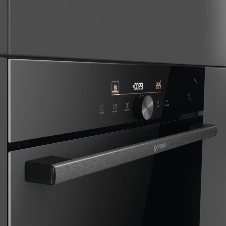 Духова шафа Gorenje BPSA6747DGWI електрична, 77л, A+, пара, дисплей, готування на різних рівнях, піроліз, чорний. Духовки Gorenje добре відомі своєю інноваційною закругленою камерою, яка вже багато років є їхньою відмінністю. Форма HomeMade була натхненна традиційними дров'яними печами та забезпечує кращу циркуляцію повітря порівняно з конкурентами. Тепер форма HomeMade була повністю перероблена, а потік повітря покращено завдяки новій конструкції нагрівача та покращеному розташуванню вентиляційних отворів. Це забезпечує стабільну температуру у всій печі.