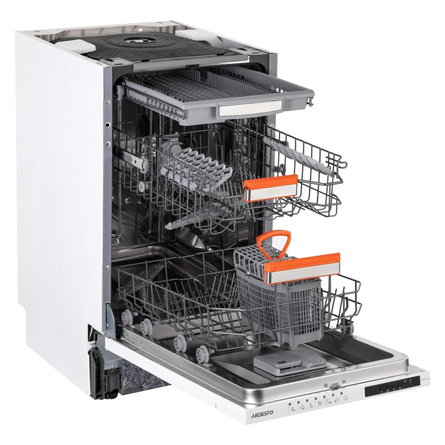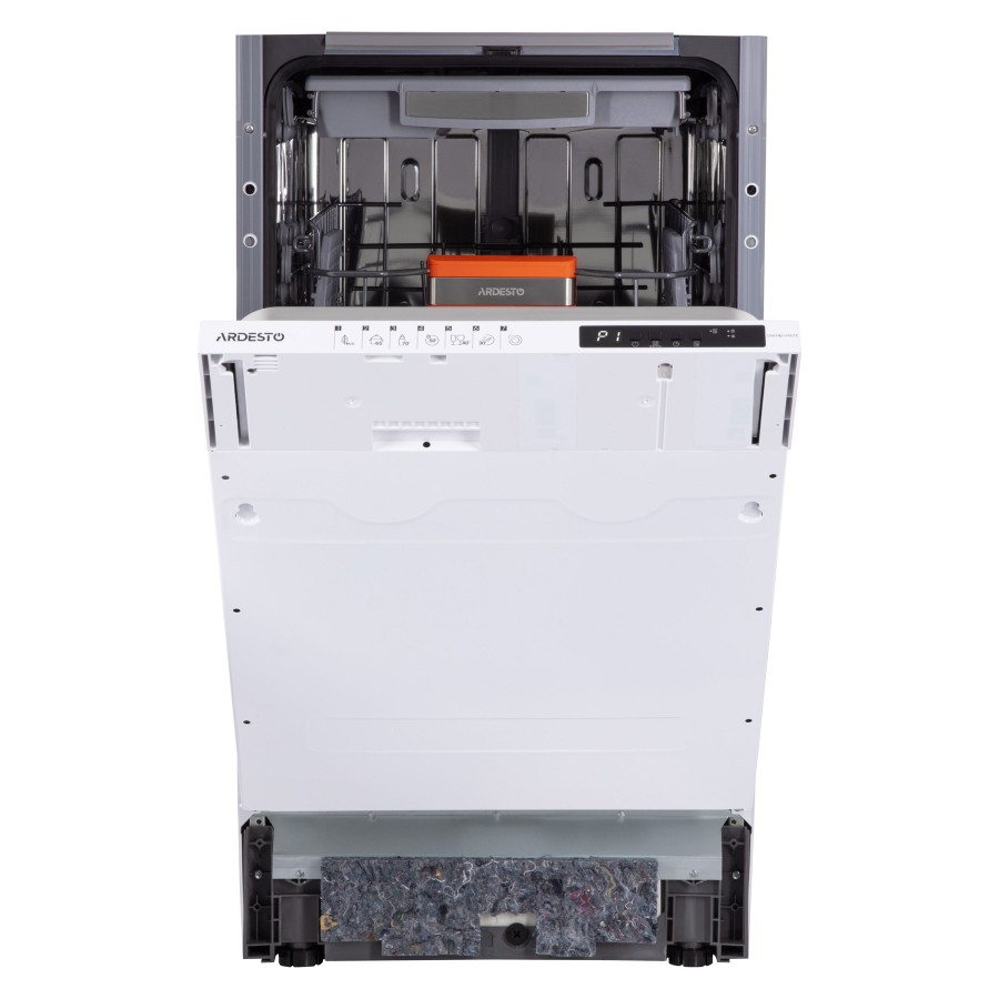 Посудомийна машина ARDESTO DWMB-V4573 має новочасний дизайн і продуманий внутрішній простір. Не зважаючи на компактність (завширшки 45 см), пристрій вимиє одночасно 10 комплектів посуду. Достатньо натиснути на кнопку на прихованому LED-дисплеї, вибравши одну з 7 програм – «Попереднє миття», «Швидке» 30´ 40 °C, «Еко» (стандарт), «Супер» 50´ 65 °C (Quick Clean), «Делікатне» 40 °C, «Гігієна» 70 °C, «Інтенсив» 65 °C та температурний режим (40-50-65-70 ºC), посудомийка почне працювати. Завдяки системі сушіння Turbo посудом можна користуватися відразу після закінчення циклу миття. З цією моделлю не потрібно чекати на повне завантаження завдяки функції половинне завантаження з одним режимом (Eco Wash), за якого машина використовує менше води та електроенергії на цикл, економлячи кошти користувачів. З-поміж особливостей – функція «Відкладення старту» (1 – 19 год.), яка робить користування ще більш зручним.