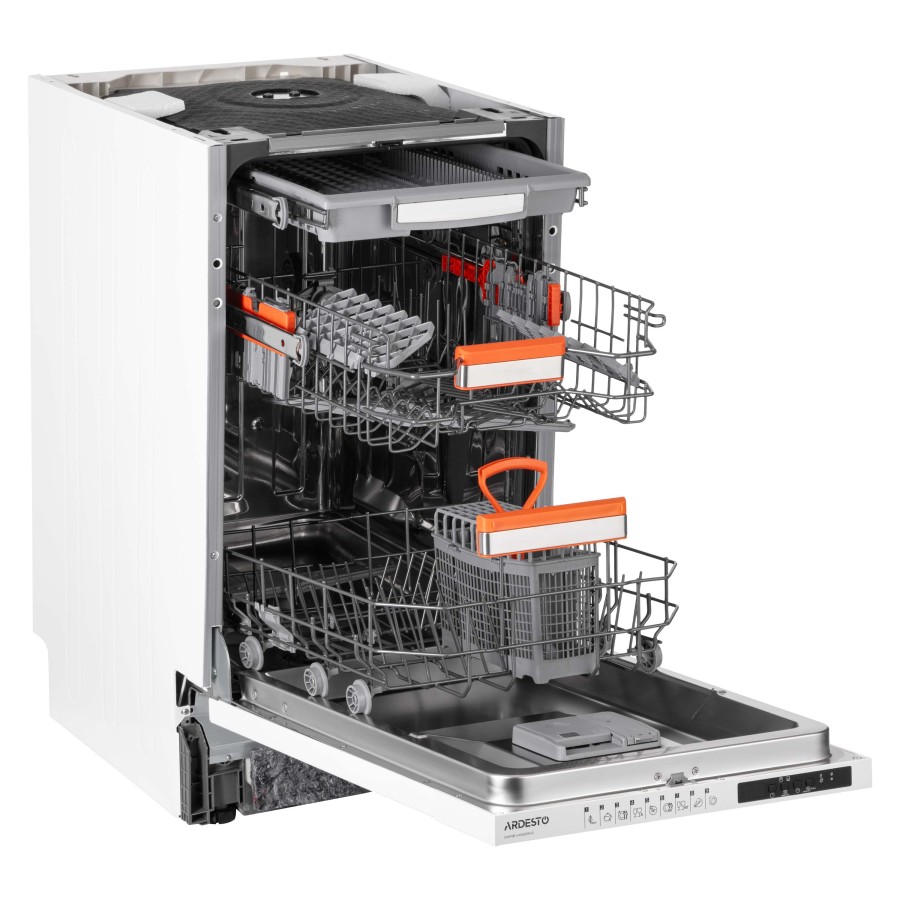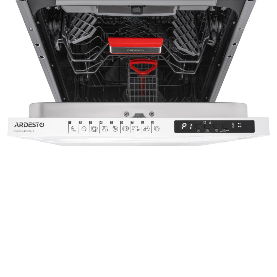 Якщо на кухні обмаль простору, стане в пригоді вбудовувана посудомийна машина ARDESTO DWMB-V459SMH3 завширшки 45 см. Незважаючи на компактність пристрій вимиє 10 комплектів посуду, використовуючи одну з 9 програм: «Попереднє миття», «Швидке» 30´ 40 °C, «Еко» (стандарт), «Супер» 50´ 65 °C (Quick Clean), «Делікатне» 40 °C, «Легкий догляд» 60 °C, Smart 30 °C – 50 °C, Smart 50 °C – 60 °C, Smart 60 °C – 70 °C. Широкий температурний режим Auto-40-50-60-65 ºC забезпечує гігієнічність під час миття, що є важливим для родин із дітьми та людей, які страждають на алергію. Вибрати необхідну програму допоможе смужка для перевірки жорсткості води. З системою сушіння Turbo та додатковим сушінням посуд можна використовувати відразу після закінчення циклу миття. Завдяки функції відкладення старту (1 – 19 год.) є змогу налаштувати запуск машини у зручний час – наприклад, коли діють знижені тарифи на електроенергію.