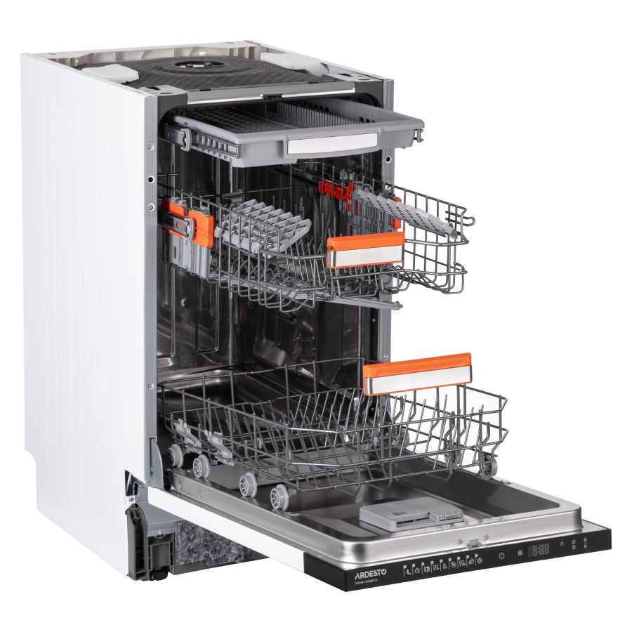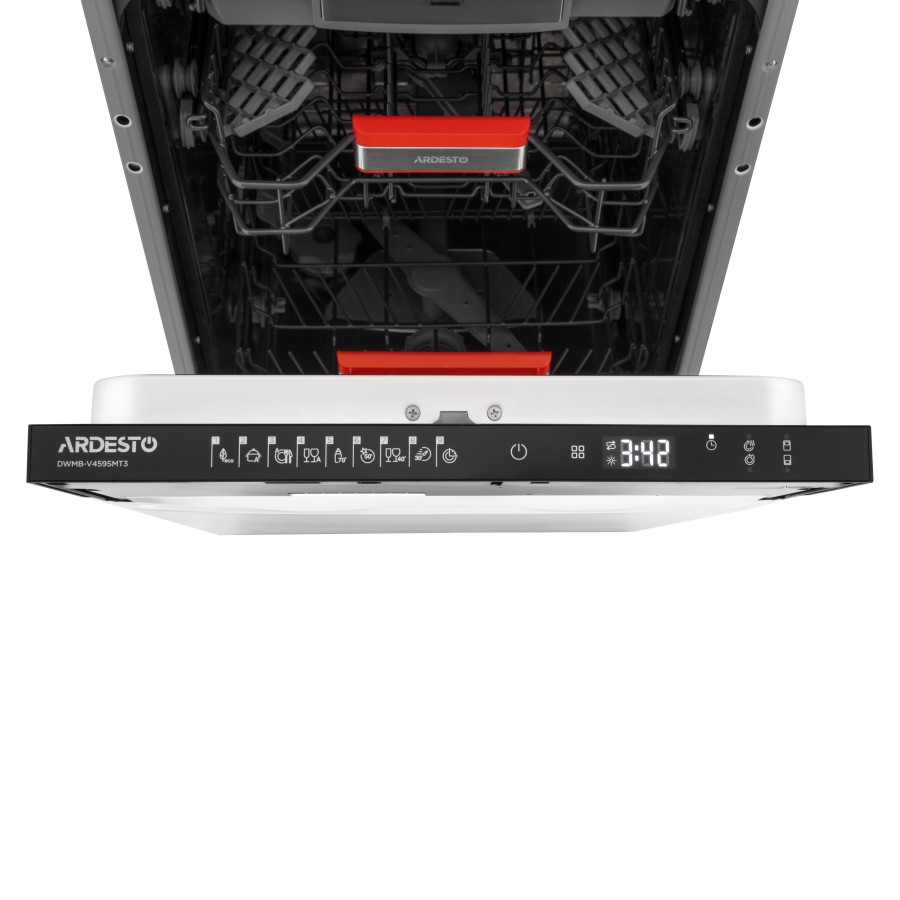 Забудьте про щоденне миття вручну, довіривши цей марудний процес посудомийній машині ARDESTO DWMB-V459SMT3. Пристрій вбудований і компактний (завширшки 45 см), тож пасуватиме чи не набудь-якій кухні. Посудомийна машина працює доволі тихо – шум на рівні 49 дБ(А). Для запуску на прихованому LED-дисплеї необхідно вибрати одну з 9 програм: «Міні» 14´ (Jet Wash), «Швидке» 30´ 40 °C, «Еко» (стандарт), «Супер» 50´ 65 °C (Quick Clean), «Делікатне» 40 °C, «Гігієна» 70 °C, Smart 30 °C – 50 °C, Smart 50 °C – 60 °C, Smart 60 °C – 70 °C. Визначають програму за допомогою смужку для перевірки жорсткості води, яка є у комплектованні. Температурні режими Auto-30-40-50-65-70 ºC поліпшують гігієнічність, що є важливим для родин із дітьми та людей, які страждають на алергію. Із системою сушіння Turbo всі 10 комплектів посуду, з якими впорається посудомийка, відразу готові до використання після закінчення циклу миття.