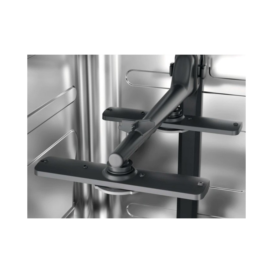 Вода потрапляє на кожну склянку, тарілку та інший посуд завдяки двом розпилювачам, що обертаються. Розпилювачі забезпечують досягнення водою кожного куточка, аби ваш посуд сяяв чистотою. У верхньому та нижньому кошику.