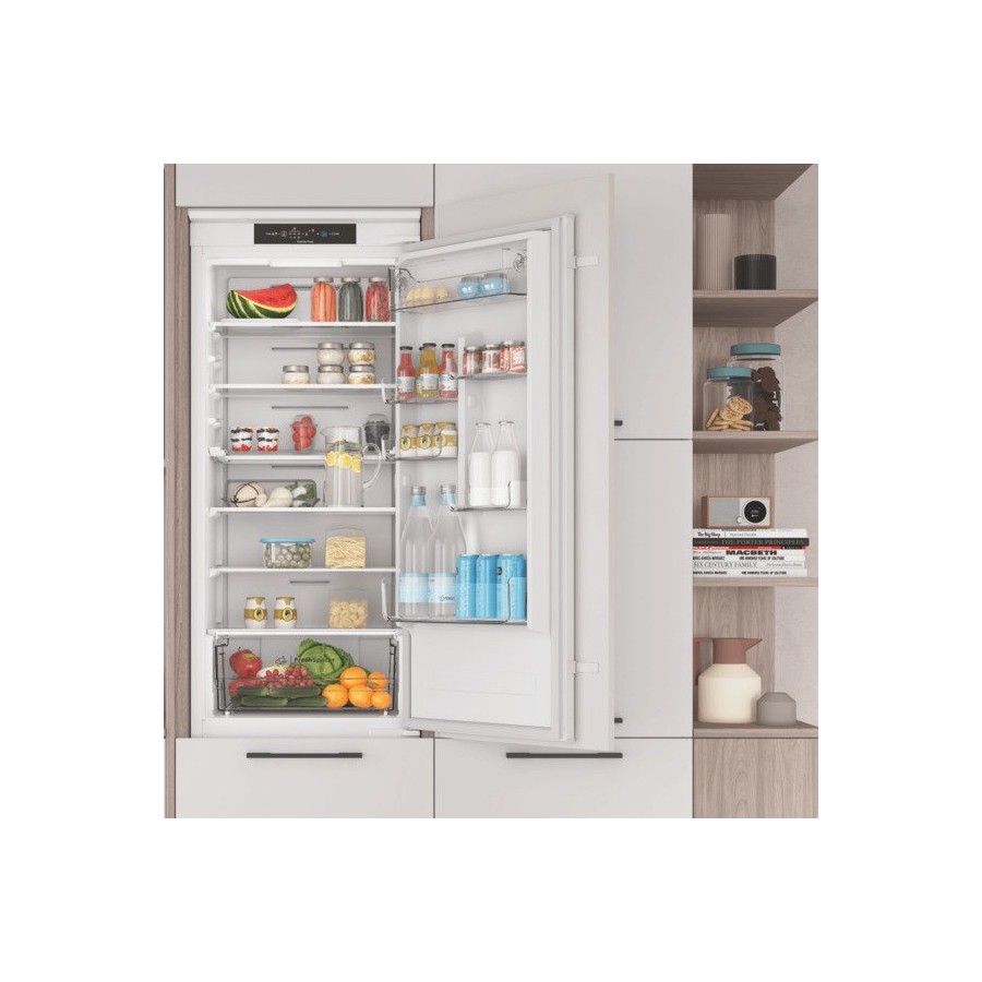 У новому холодильнику Indesit тепер є можливість зрушити полицю для зберігання високих предметів або скласти її, щоб зберігати більш громіздкі предмети. Виберіть бажане налаштування, щоб швидко та легко зберігати все необхідне в холодильнику.